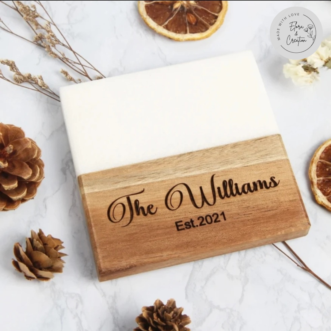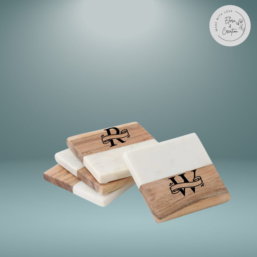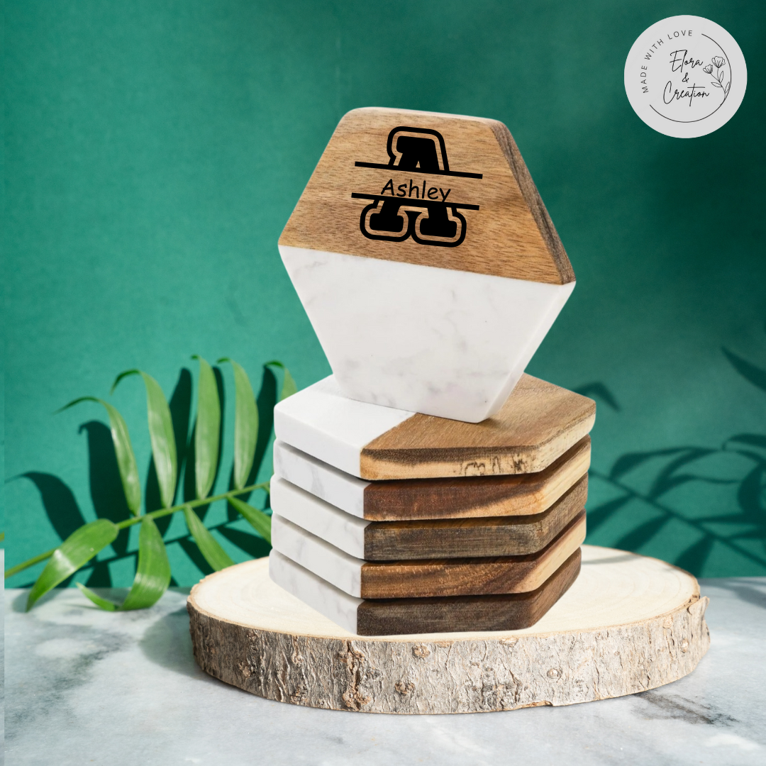 Add a touch of elegance to your table with our Custom Wooden & Marble Coasters, beautifully crafted from natural marble and solid wood. Each coaster is laser-engraved with your custom design, name, logo, or initials, making it a truly unique and thoughtful gift for any occasion.