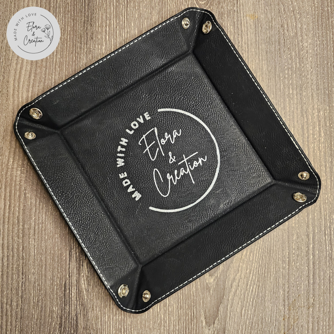Perfect for holding your wallet, phone, keys, jewelry, or everyday carry items, this tray keeps your desk, dresser, nightstand or entryway neat and stylish. Personalize it with a name, initials, or logo for a truly unique piece — ideal for gifting or personal use.