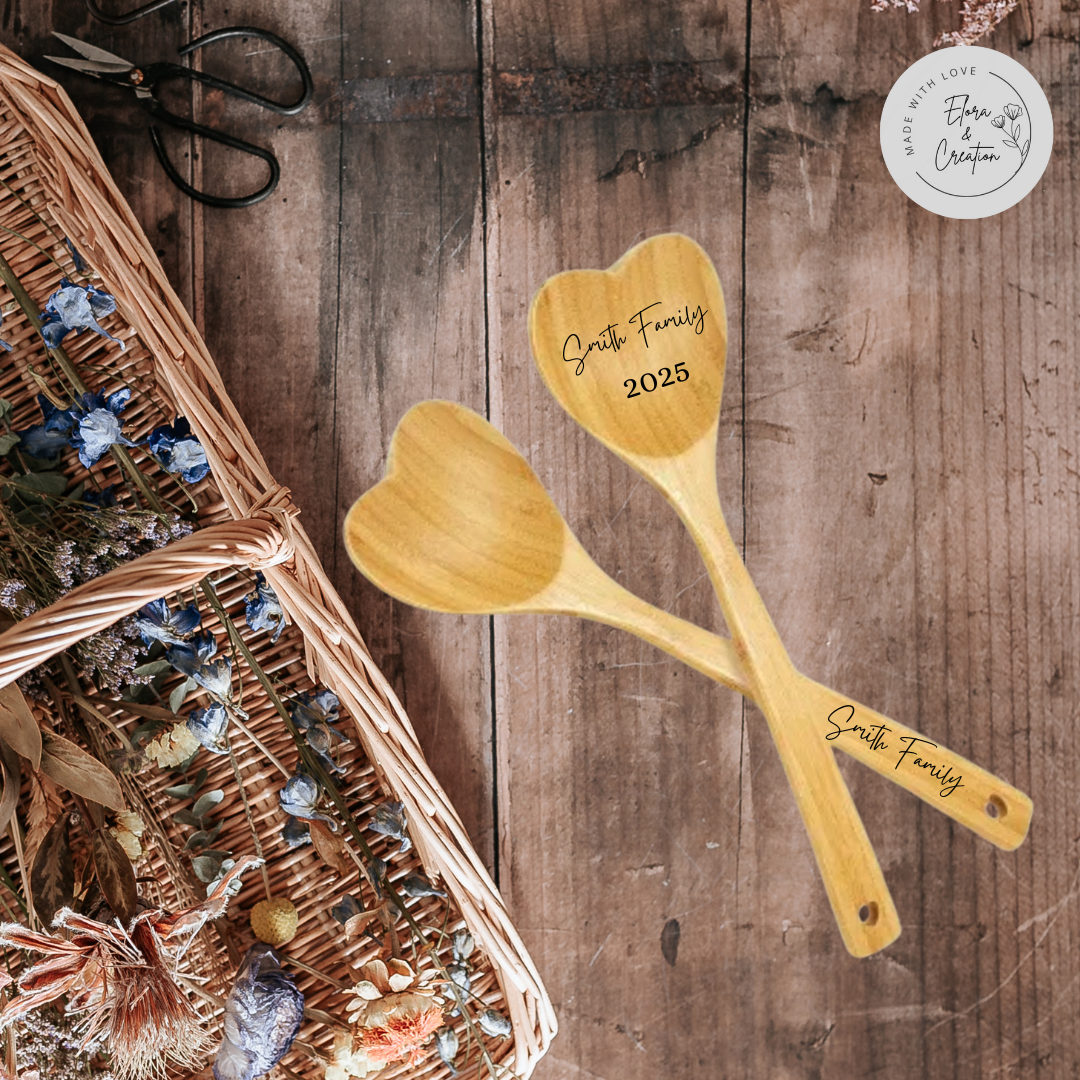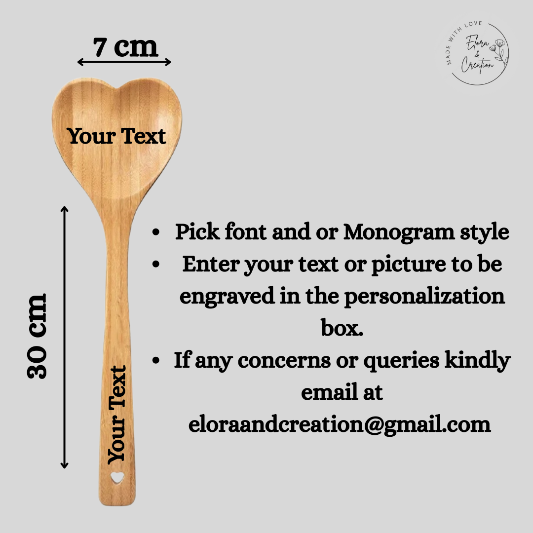 Add a touch of love to your kitchen or gift giving with our Custom Engravable Heart-Shaped Wooden Spoon. Handcrafted from natural, eco-friendly wood, this spoon combines charm and practicality — perfect for cooking, baking, or displaying as a personalized keepsake.