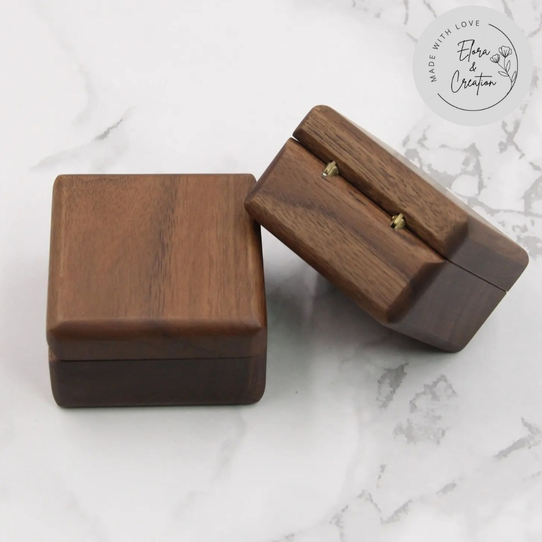 Wood is a natural material. Variations in color, grain, and engraving shade are normal and part of the beauty of handmade wooden products. Each ring box will be unique.